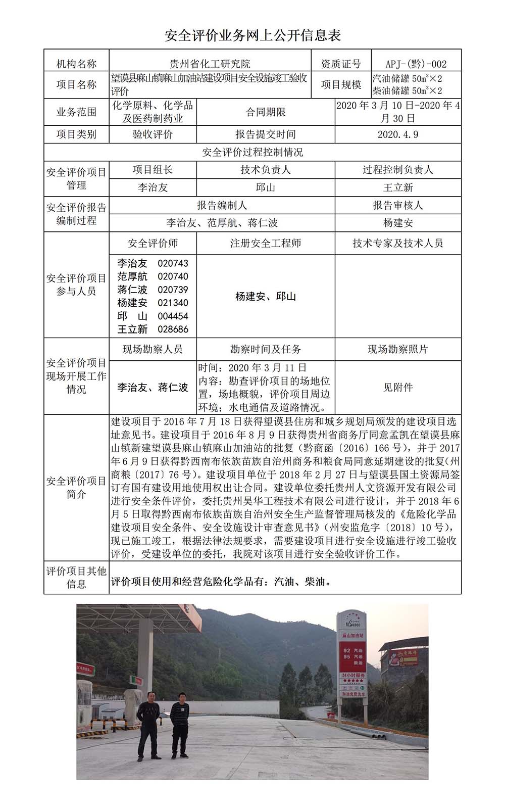 望谟县麻山镇麻山加油站建设项目安全设施竣工验收评价