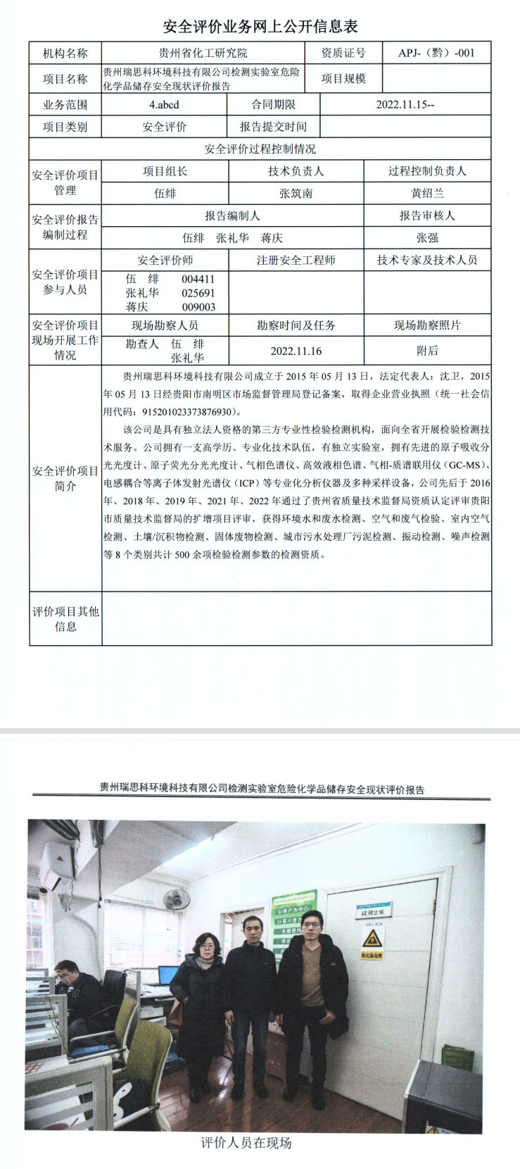 贵州瑞思科环境科技有限公司检测实验室危险化学品储存安全现状评价报告